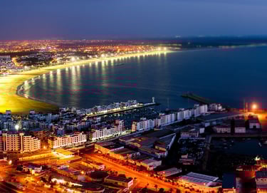 A strategic city in the north of the country, Tangier blends European and Moroccan influences, with a vibrant medina, historic cafes and views of the Strait of Gibraltar.