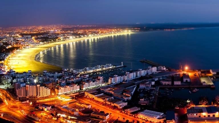 Ville stratégique au nord du pays, Tanger mélange influences européennes et marocaines, avec une médina vivante, des cafés historiques et des vues sur le détroit de Gibraltar.